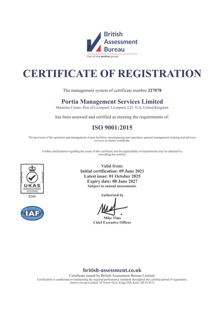Portia are pleased to say that the successful outcome of our ISO External Audit today means another year’s certification for BS EN ISO 9001:2015 Quality Management System.